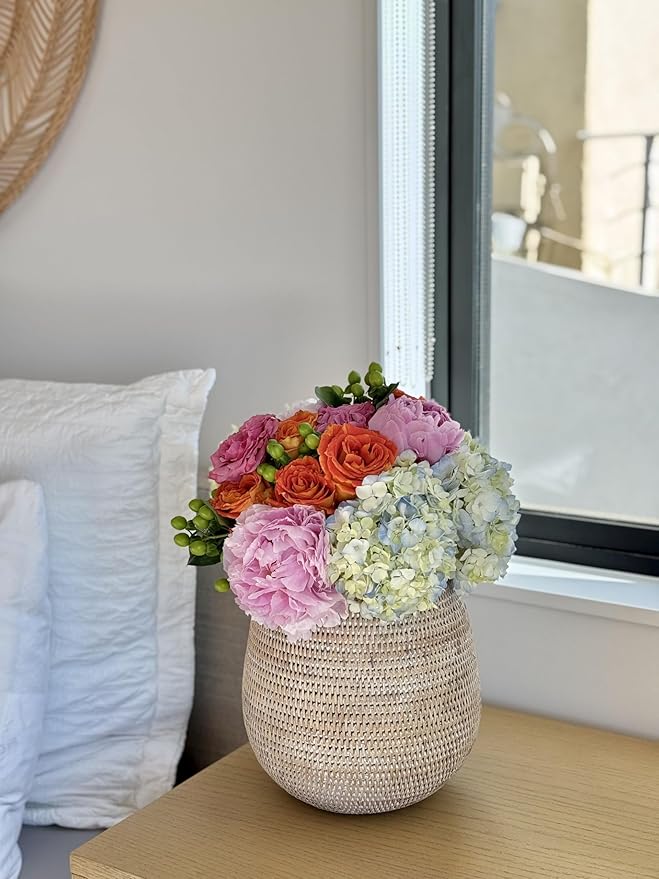 KOUBOO La Jolla Coco Rattan Bowl, White-Wash, Large Planter