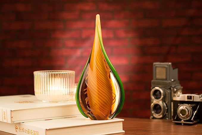 - [Design Features] Art glass sculpture is designed with teardrop, uses brilliant colors, red, blue, yellow, transparent, four-color gradients, and is shaped like a waterdrop. It has rich contemporary home features
