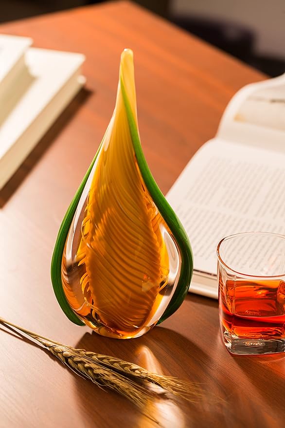 Yao Yuan Handmade Blown Murano-Style Art Glass Sculpture, Yellow and Green Glass Craft Decoration