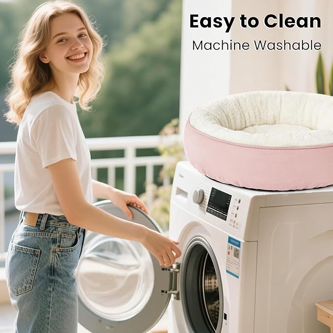 Love's cabin Round Donut Cat and Dog Cushion Bed, 25in Pet Bed for Small or Medium Dogs, Anti-Slip & Water-Resistant Bottom, Soft Durable Fabric Pet Beds, Washable Calming Cat & Dog Bed Pink