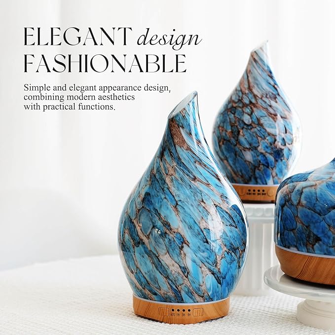 - UNIQUE ART DECORATIVE DESIGN - Our 280ml glass essential oil diffuser has an elegant starry pattern glass cover and wood grain decorative base. It is very suitable for your bedroom, living room, children's room, study room, office, and yoga room.