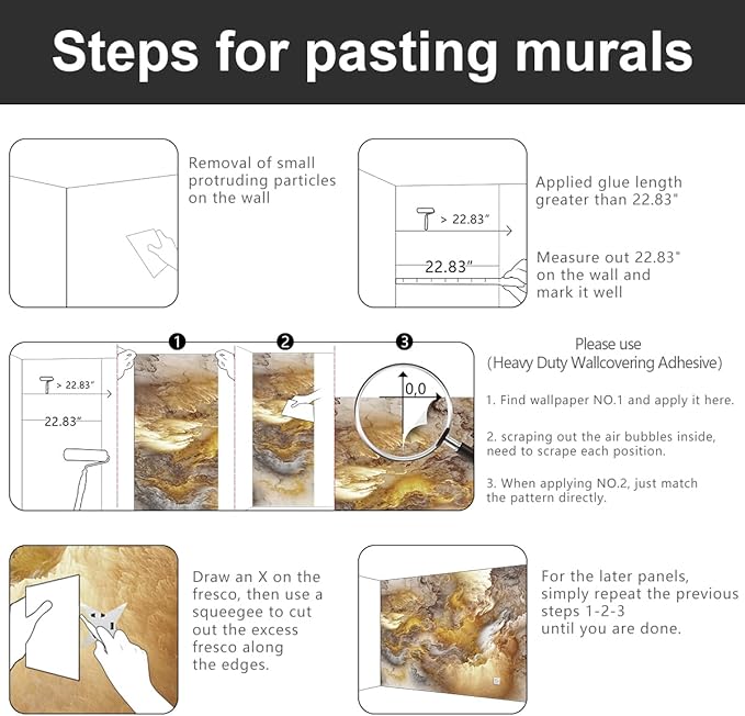 - ⚠️This product is not self-adhesive and peel-off nor is it a wallpaper sticker Installation tools are not included, you will need to purchase your own tools and heavy duty wallpaper adhesive, otherwise it will not work!