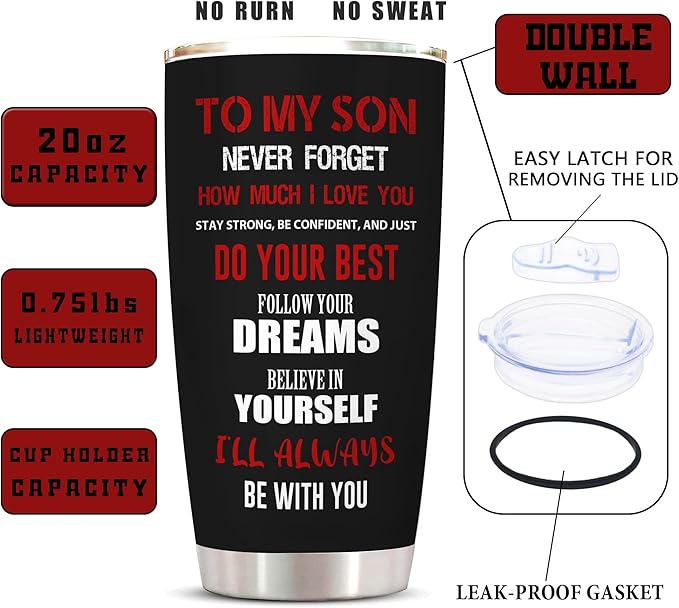 - 🎁【Perfect Gift for Son】: A funny gift for son. Give him this gift, thank him for being your son, and make every day of your life worthwhile. This Tumbler is a Coming-of-age Gift, Graduation Gift, and Birthday Gift for Your Son.