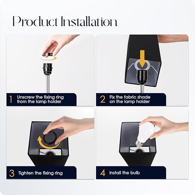 - Minimalist Design: The nightstand lamp comes with chrome-plated base and black fabric shade. It can soften the light and protect your and your family's eyes. Bedside lamp emits evenly comfortable lighting that creates a relaxing atmosphere in your home