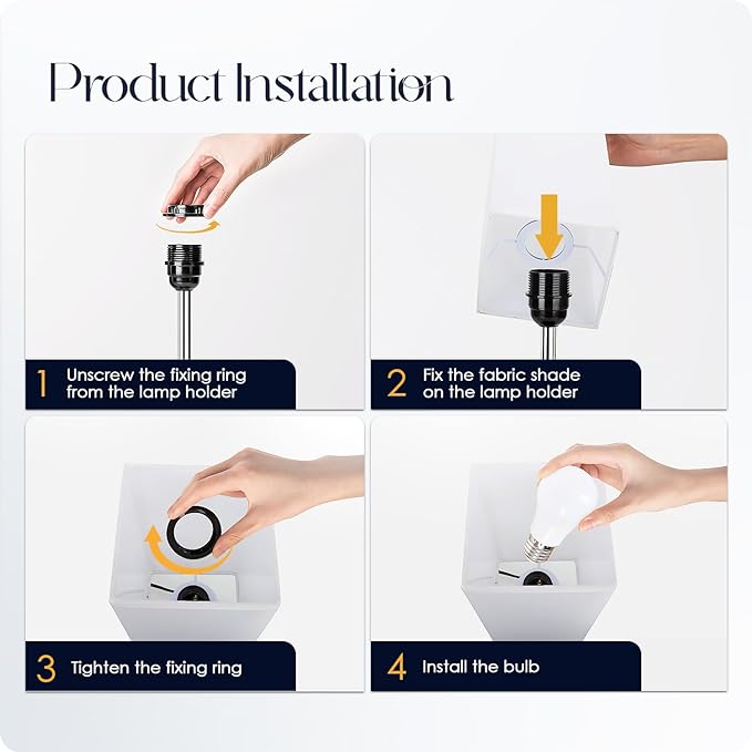 - Minimalist Design: The nightstand lamp comes with chrome-plated base and white fabric shade. It can soften the light and protect your and your family's eyes. Bedside lamp emits evenly comfortable lighting that creates a relaxing atmosphere in your home
