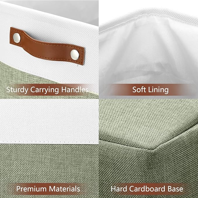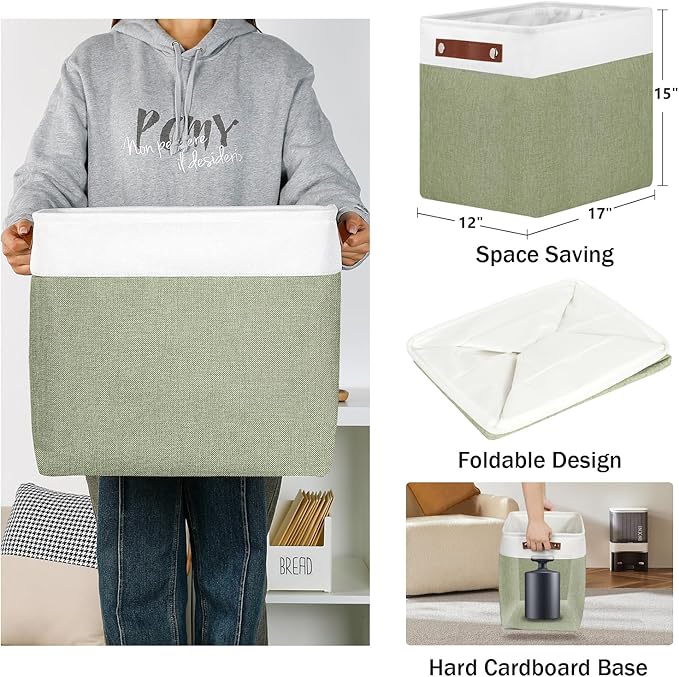 DULLEMELO Extra Large Storage Baskets, 17"x12"x15" Fabric Storage Bins for Organizing Shelves Nursery Toys Books, Collapsible Storage Baskets Rectangular Canvas Bins with Handles, White&Green, 2-Pack