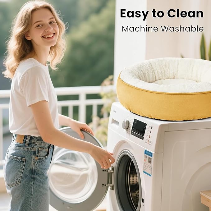 Love's cabin Donut Pet Bed Mat, 30in, Yellow, for Dogs, Soft, Durable, Anti-Slip, Water-Resistant, Washable