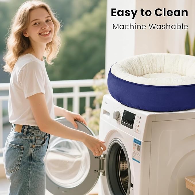 Love's cabin Round Donut Cat and Dog Cushion Bed, 30in Pet Bed for Medium or Large Dogs, Anti-Slip & Water-Resistant Bottom, Soft Durable Fabric Pet beds, Washable Calming Cat & Dog Bed Navy