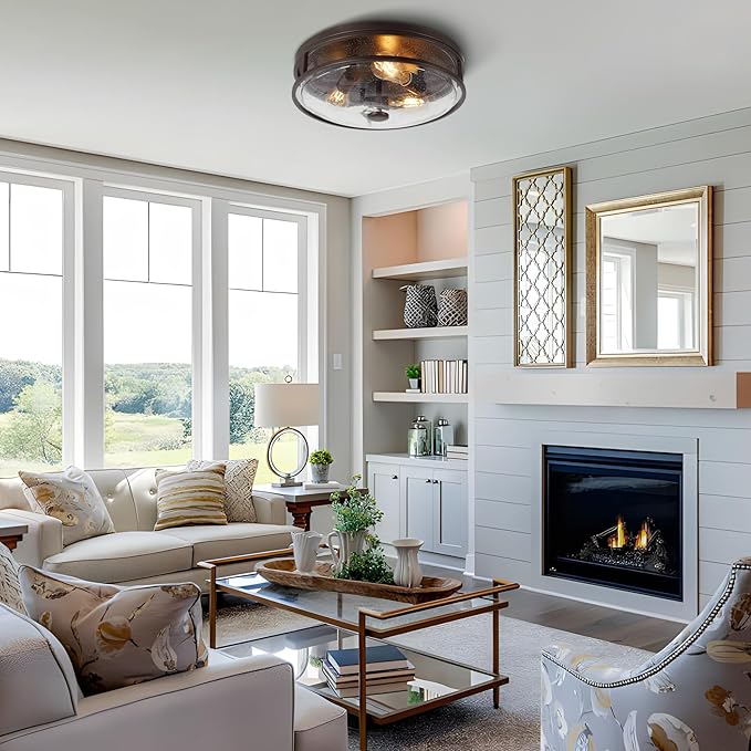 - Dimension and Material: Our ceiling light boasts a captivating circular design, measuring 16.1 inches in diameter and 5.3 inches in height. Crafted with premium bubble glass and a sturdy Metal Frame, it combines style and durability seamlessly.