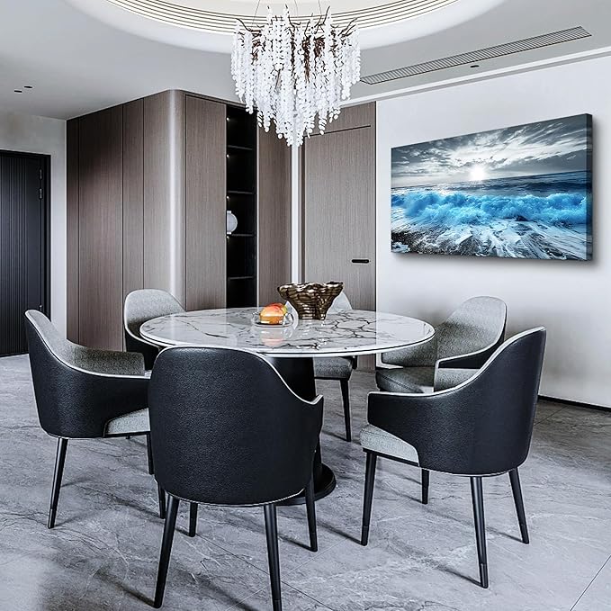 Lapremoly Framed Wall Art For Living Room Large Canvas Wall Decor For Office Blue Beach Painting Ocean Sea Waves Wall Pictures Bedroom Home Decorations Prints Posters Mural Artwork Ready to hang