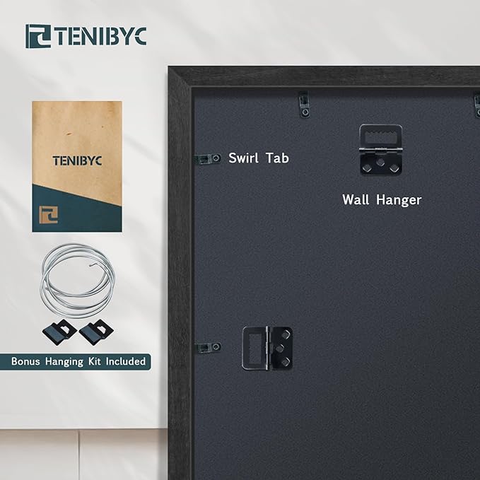- Solid Wood Frame, Woodgrain Series: Timeless elegance is achieved as deep black harmonizes with natural wood grain, characterizing the TENIBYC frame. Its versatile design gracefully complements living rooms, corridors, dining rooms, offices, and galleries