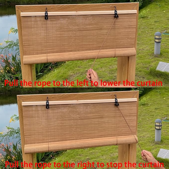 - Made of carefully selected bamboo. Easily installed in minutes with all necessary hardware included. It can be used indoor or outdoor but DO NOT expose to rainwater. Smoothly roll up or down to control sun light and wind in your room