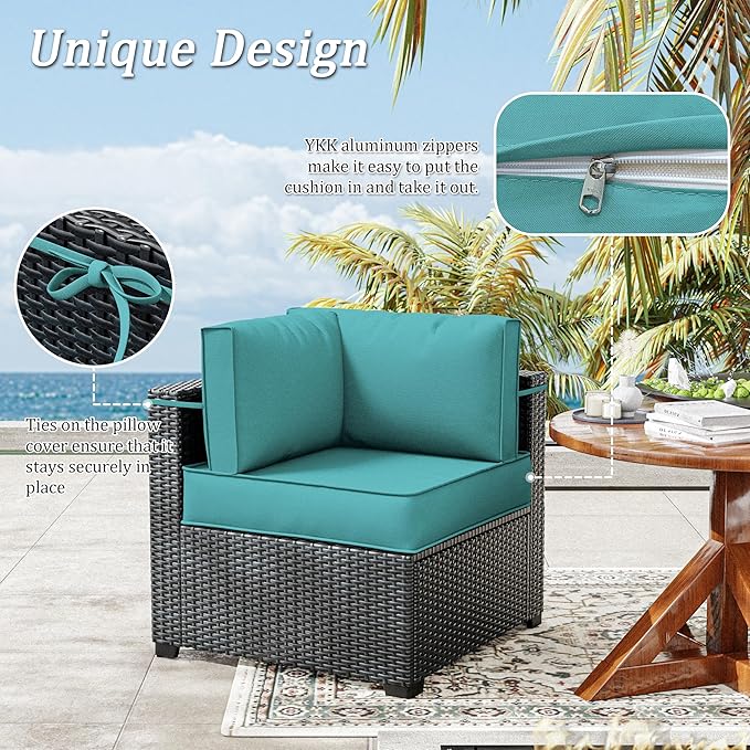 14 Pcs Outdoor Patio Cushion Covers, Replaceable Waterproof Furniture Covers, Outdoor Non-Slip Covers with Zippers, Couch 3 Sizes, Covers Only (Lake Blue)