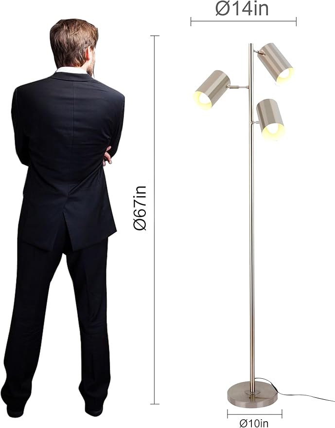 - Versatile Lighting: Tree-style floor lamp featuring 3 adjustable and rotating light heads, allowing you to direct illumination exactly where needed for optimal task or ambient lighting