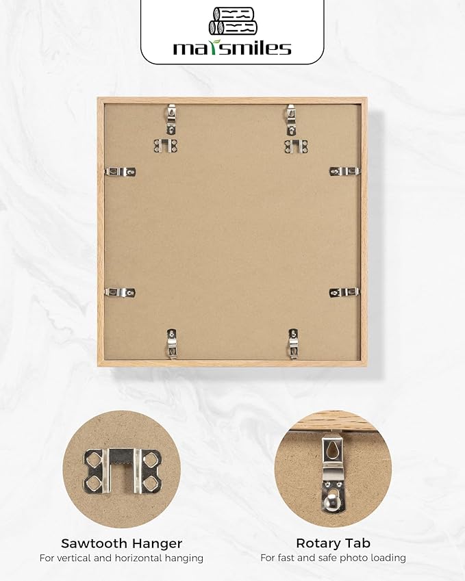Marsmiles 16x16 Wooden Picture Frame, USA-Sourced Natural Oak Solid Wood Photo Frame with Real Glass for Display Pictures 12x12 with Mat or 16x16 without Mat, Natural, 1 Pack