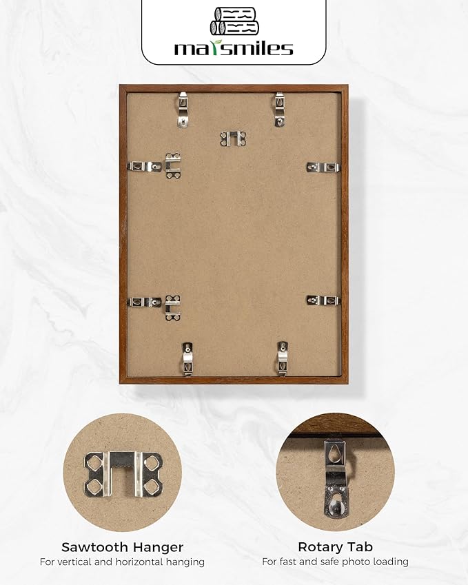 Marsmiles 12x16 Wooden Picture Frame, USA-Sourced Natural Oak Solid Wood Photo Frame with Plexiglass for Display Pictures 8.5x11 with Mat or 12x16 without Mat, Walnut, 1 Pack