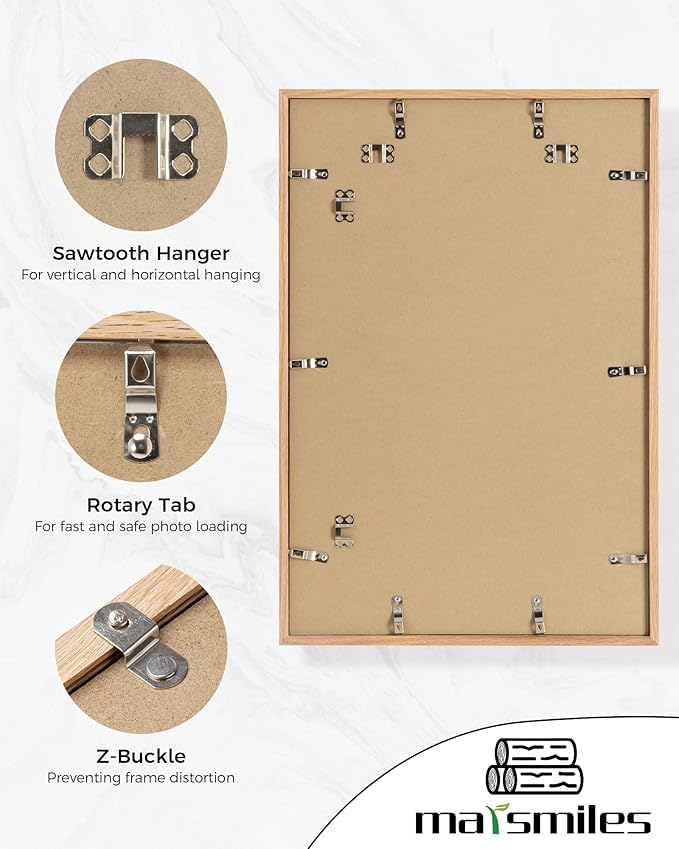 Marsmiles 16x24 Wooden Picture Frame, USA-Sourced Natural Oak Solid Wood Photo Frame with Real Glass for Display Pictures 12x18 with Mat or 16x24 without Mat, Natural, 1 Pack