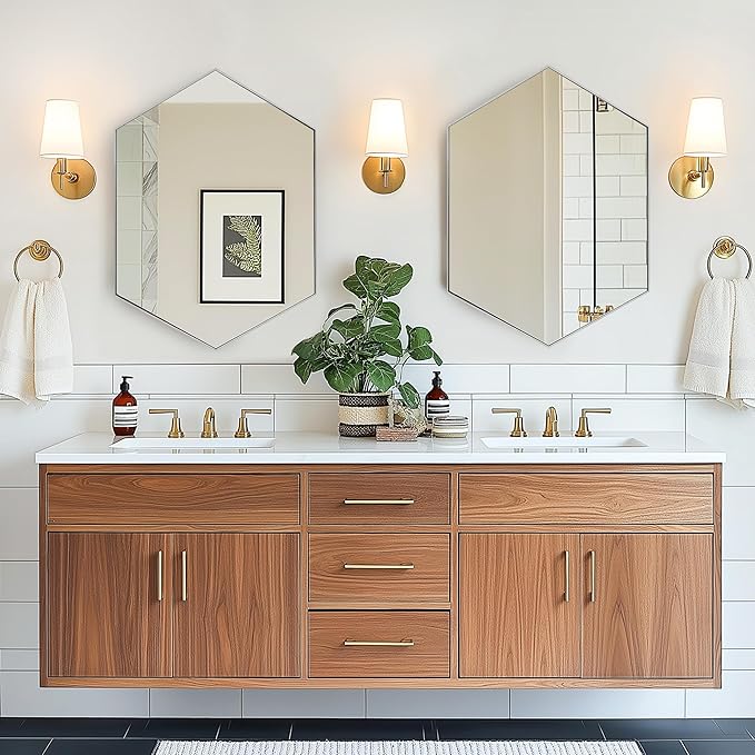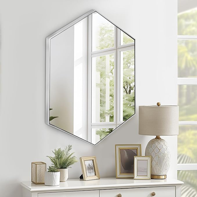 - **Hexagon Mirror Shape: Combining beauty and functionality, this black/gold/silver medicine cabinet with mirror features a hexagon-shaped design that adds a touch of natural elegance to your bathroom. Its mirrored surface not only improves visibility but also creates an illusion of spaciousness, making your bathroom feel more open and inviting
