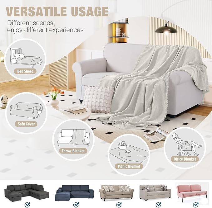 - VERSATILE USE: Our sofa cover can be used for sofas, futons, recliners, sectionals and other furniture; The soft design can also be used as a warm blanket or as an end-of-bed blanket for decoration; It can be used in different scenes to meet different needs, enhance the living experience, and make life more colorful