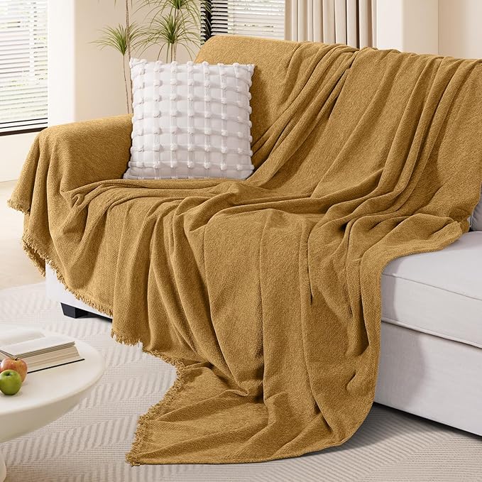 KinCam Couch Covers for 3-4 Cushion Couch Sofa Cover Washable Sectional Couch Cover for Dogs Tassel Sofa Blanket Cover Pet Friendly Soft and Durable for Most Furniture(71" x 150", Mustard Yellow)