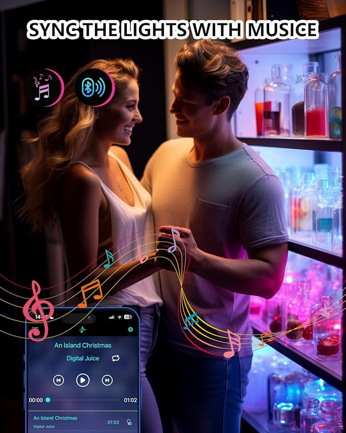 - Music Reactive: Experience lights that dance to your tunes with our built-in microphone technology. Perfect for lively parties or relaxed gatherings.