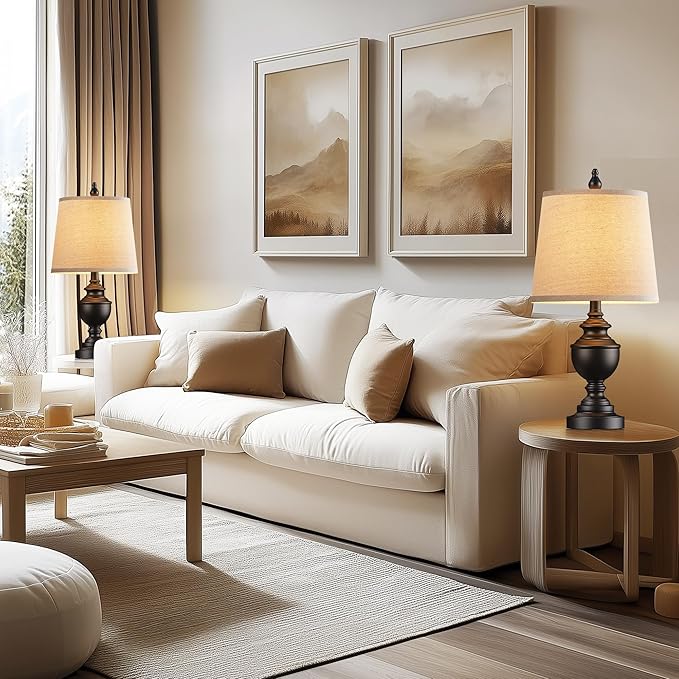 - Retro and Elegant Design: Featuring a resin lamp body and a linen shade, each lamp boasts a classic yet vintage design that adds an elegant atmosphere to your home. Its versatile style complements various furniture aesthetics, including industrial, modern, minimalist, Scandinavian, and country styles. Illuminate your space with charm and sophistication
