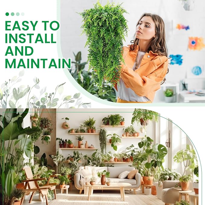 - Simple to Maintain: Boston fern is an artificial plant, so it does not need water, soil and fertilizers, not affected by natural weather, not easy to fade, suitable for you to make decorations in four seasons; Importantly, you do not spend some time and energy trimming it