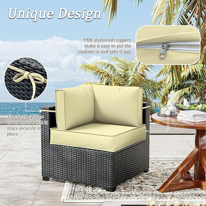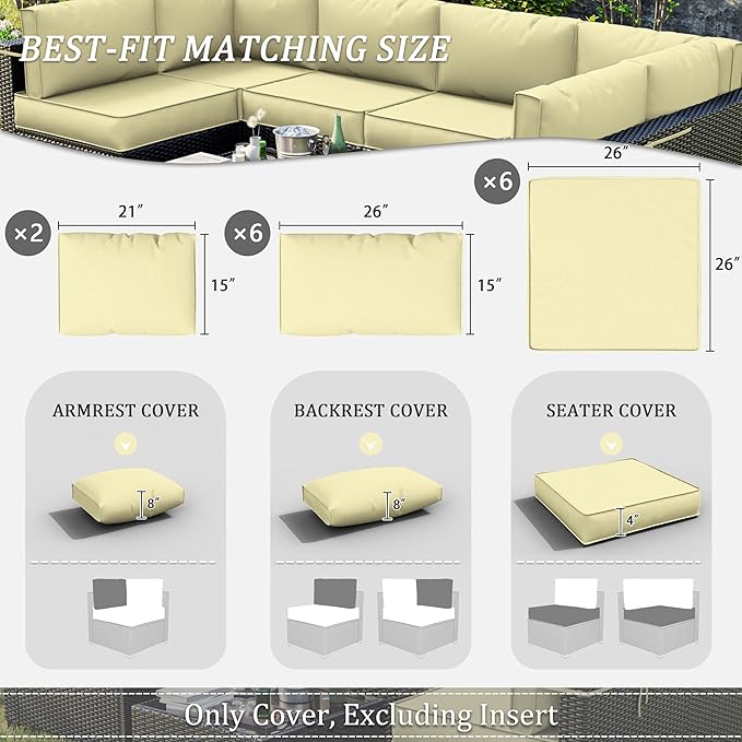 14 Pcs Outdoor Patio Cushion Covers, Replaceable Waterproof Furniture Covers, Outdoor Non-Slip Covers with Zippers, Couch 3 Sizes, Covers Only (Light Yellow)