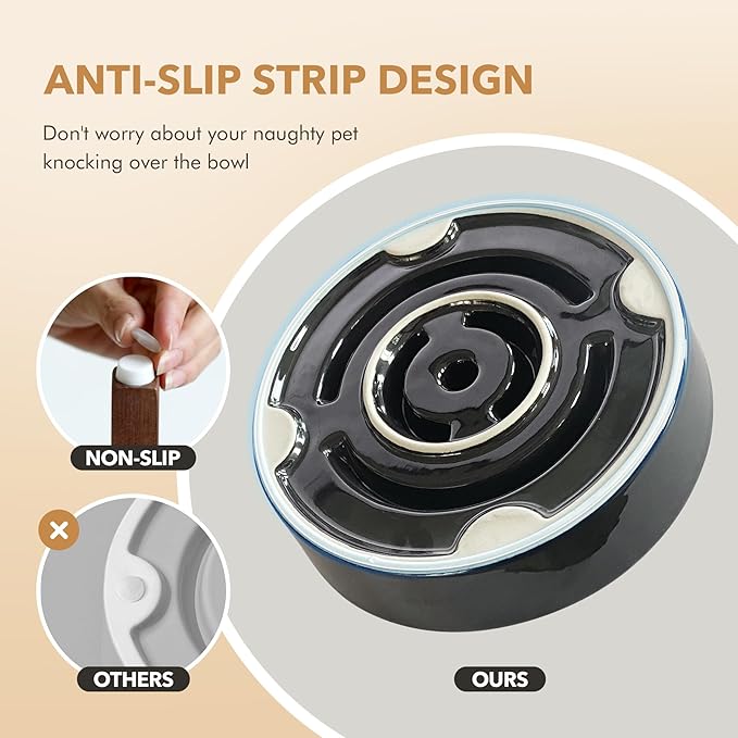 - Stable and Non-slip: Heavy duty ceramics blow with Anti-Slip strip at the bottom of the dog bowl to prevent bowls from sliding and overturning. It can also prevent food from spilling on the ground.