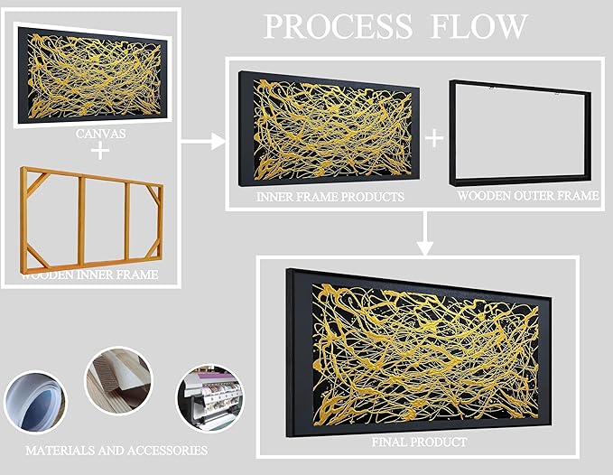 - 【Canvas Mural Size】Titled "black and gold abstract" The size is 59" x 29". Since each painting is hand-painted, the actual painting may differ slightly from the product image. Due to different monitor brands, the actual wall painting color may be slightly different from the product picture.