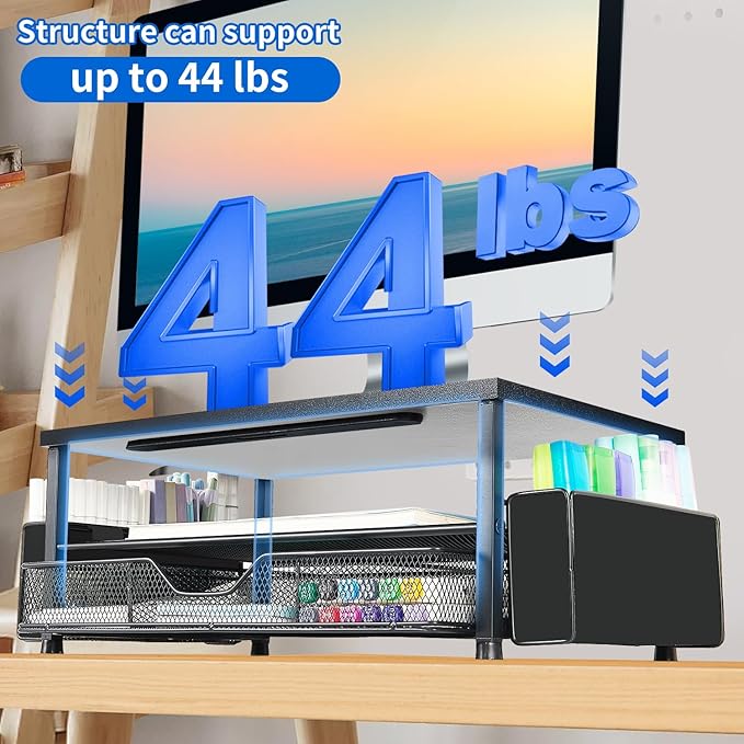 - 【Achieve Perfect Ergonomic Height】Elevate your screen to eye level and end neck strain. Our monitor stand for desk organizer promotes a healthier posture for those long workdays, transforming your desk into a comfortable and pain-free workspace