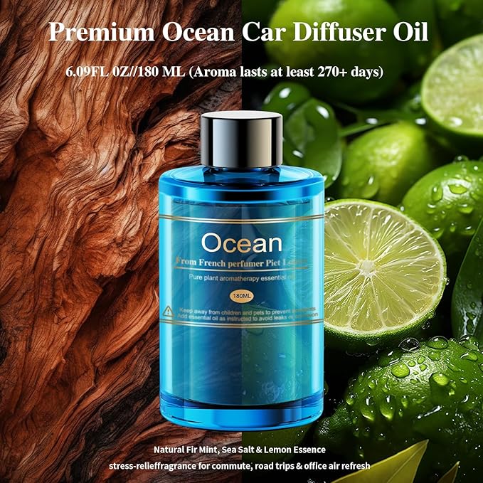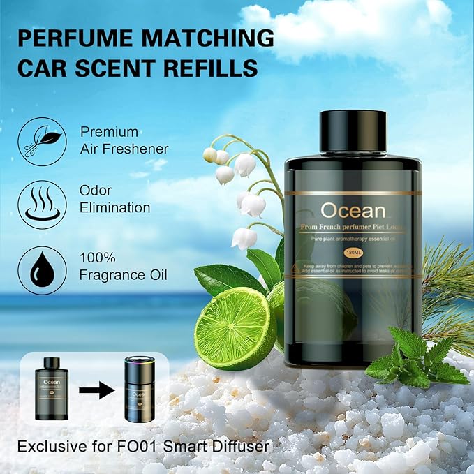 Car Air Freshener Refill for Men & Women 6.09 FL OZ /180ML-9 Month Ocean Scent Essential Oil Perfume, Essential Oil Made of Natural Plant Extracts, Compatible with Car Diffusers for Home/Office
