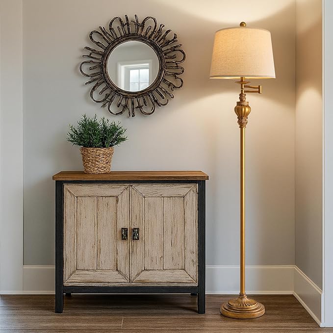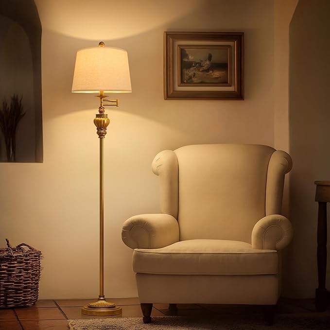 - Practical 350° Adjustable Swing Arm: The farmhouse floor lamp for bedroom allowing you to easily direct the light where you need it most. This bedside lamp provides flexibility and convenience in illuminating different areas of your room