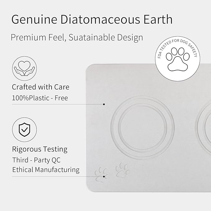 - Easy to Clean Keep Home Tidy : This stone pet food mat accommodates pets' food bowls, water bowls, and auto feeders efficiently; It's an ideal way to keep your feeding area clean and tidy.It's the perfect solution for all your daily drying needs! Stone Base made with diatomaceous earth that's designed to instantly remove water, helping to prevent messes and unpleasant odors.Save lots of your time to clean mat and floors.