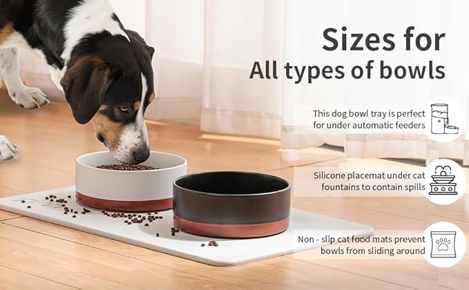 - PRACTICAL AND BEAUTIFUL: The stone drying mat can quickly absorb moisture and dry within tens of seconds. The stylish Dog Bowl Stone mat dog bowl holders with 2 debossed each side, one debossed suitable 8 inch bowls,another debossed suitble for 6 inch bowl, and stone mat with a non-slip base. the pet bowls and mat which are not easy to move around, Keep your floors tidy and your pets happy! (Bowls not included)
