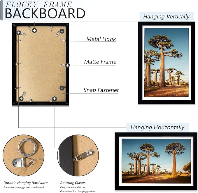 - MATERIAL SAFETY - 12x18 poster frame's high-definition tempered plexiglass front that is durable and shatterproof, this makes it a safe choice for those with children, eliminating worries about getting injured from accidental glass breakage.
