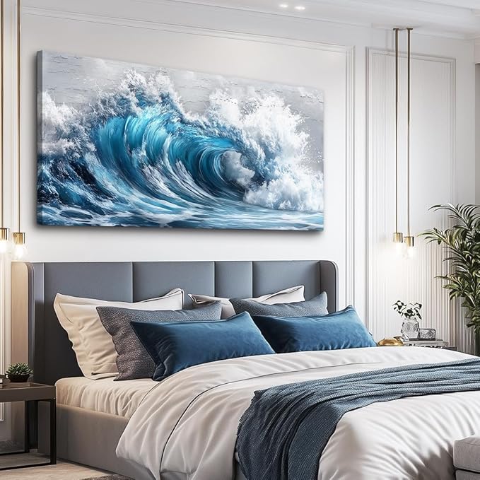 ZUITINGHUA Canvas Wall Art For Living Room Large Wall Decor For Office Bedroom Decoration Ocean Wave Landscape Picture Black And White Painting Artwork Room Wall Mural Aesthetic Home Decor 30x60 In