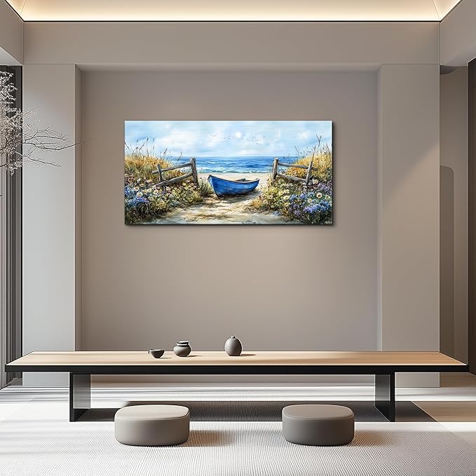 ZUITINGHUA Canvas Wall Art For Living Room Wall Decor For Bedroom Office Wall Decoration Seaside Landscape Painting Boat Pictures Artwork Room Aesthetic Home Decor 20x40 In