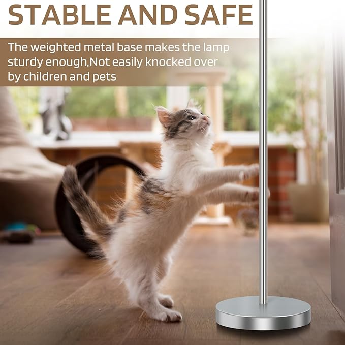 - Sturdy Metal Base: Our floor lamp for bedroom features a base made of high-quality metal and solid weight blocks to ensures stability, making it safe for homes with children or pets. The 9.84" diameter base of this bright floor lamp is of moderate size and fits well into sofa or any other narrow corner
