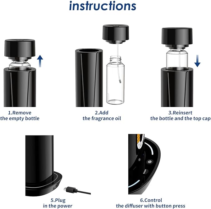 - 【Scent diffuser starter kit】The package includes everything you need to get started: the diffuser unit, one 120ml refillable essential oil bottle, five trial-size essential oils, remote control, USB cable, power adapter, replaceable atomizer core*2 and a user manual.