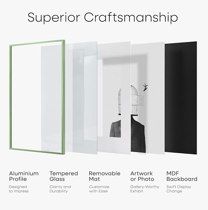 - SAGE GREEN, PERFECTLY BALANCED. Neither flashy nor flat, this color brings a designer’s eye to everyday framing—timeless and calm.