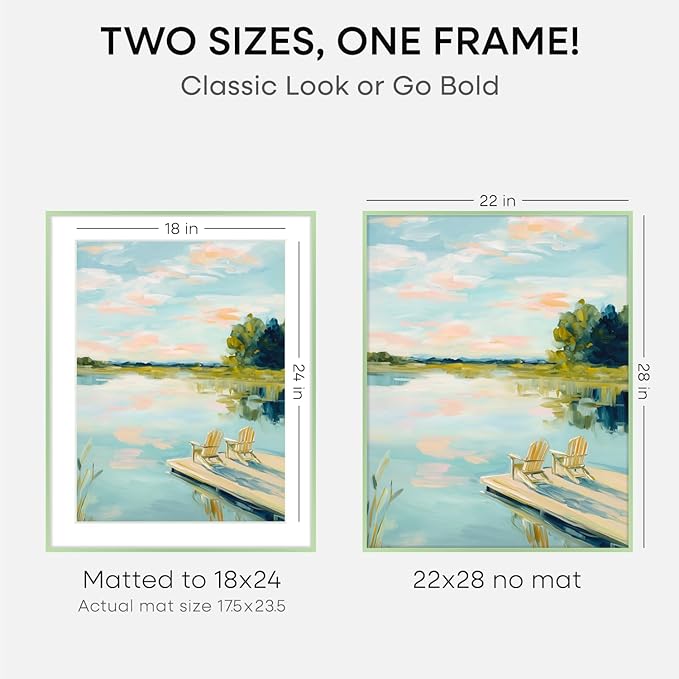 - SAGE GREEN, PERFECTLY BALANCED. Neither flashy nor flat, this color brings a designer’s eye to everyday framing—timeless and calm.