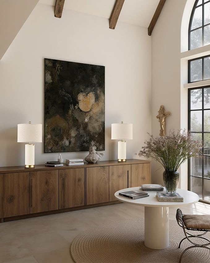 KDG 23.4" White PU Leather Table Lamps for Living Room Set of 2, 3 Level Brightness LED Modern Home Decor Fabric Lampshade Desk Lamp Lighitng for Bedroom, Bedside, Farmhouse, Nightstand, Night Light