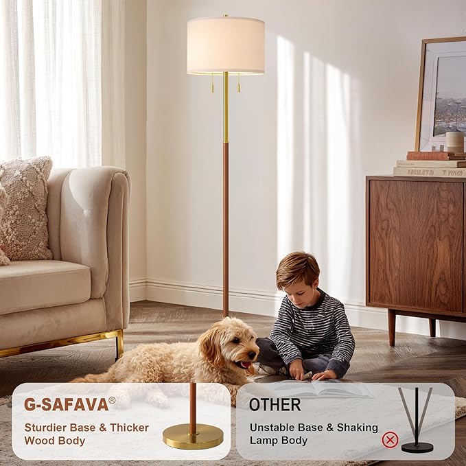 - Sturdy Wood Floor Lamp: This mid century modern floor lamp features a solid metal base and wood material that prevents wobbling or tipping, ideal for homes with kids or pets. The farmhouse floor lamp-inspired linen shade diffuses light into a cozy glow, perfect for floor lamps for living room relaxation or as a bedroom floor lamp nightlight. Combines mid-century modern floor lamp aesthetics with industrial durability