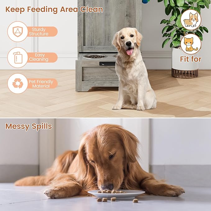 - Easy Assembly & Maintenance: Quick 15-minute setup with included hardware and tools, the sturdy design supports a large amount of pet supplies, providing a stable and secure feeding station for your dog.