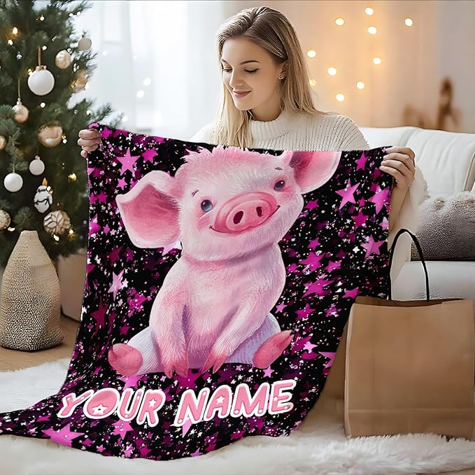 Pig Blanket for Gift, Custom Girls Blankets, Pink Cozy Soft 50 x 40 Inches Flannel Throws for Bed Travel Sofa Living Room